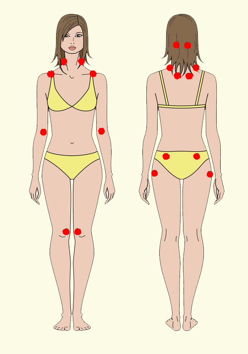 Até os anos 1990, usava-se um mapa elaborado por 20 reumatologistas para testar a sensibilidade do paciente. Os 18 pontos distribuídos pelo corpo eram os mais citados por pacientes como locais doloridos. São simétricos bilateralmente, e a maioria se concentra acima da cintura. Alguns deles, em especial na nuca, nas escápulas e na parte externa dos cotovelos, ao serem pressionados provocavam gritos de dor.