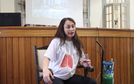 Rochelle Benites tem fibrose pulmonar há seis anos e há três anos está em lista de transplante na Santa Casa de Porto Alegre. Pra sobreviver, enquanto aguarda pelo transplante, ela toma quatro medicamentos diários (Citrato de sildenafila 40 MG, Espironolactona 100 mg, Furosemida 40 MG e Levotiroxina 150 MG) e faz uso permanente de oxigênio.