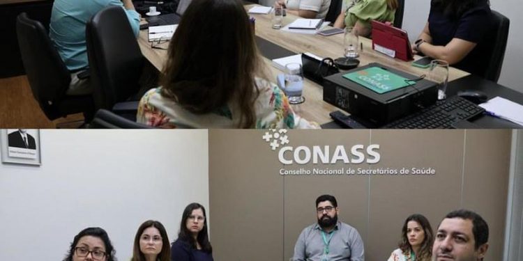 Os assessores técnicos de assistência farmacêutica e atenção especializada do Conass, Heber Dobis, Henrique Vogado e Luciana Tolêdo, reuniram-se hoje (19), na sede do Conass, com os representantes da Secretaria da Atenção Especializada do Ministério da Saúde (SAES/MS).