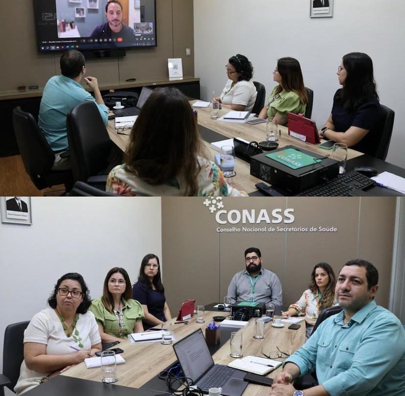 Os assessores técnicos de assistência farmacêutica e atenção especializada do Conass, Heber Dobis, Henrique Vogado e Luciana Tolêdo, reuniram-se hoje (19), na sede do Conass, com os representantes da Secretaria da Atenção Especializada do Ministério da Saúde (SAES/MS).
