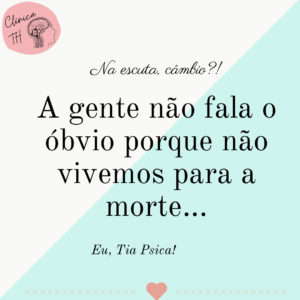 São incontáveis os casos dos enlutados que atendi e me dizem igualmente: eu deveria ter abraçado, perdoado, dito que amava e que admirava! E ai a Tia Psica os lembra que vivemos para a vida e por isso não nos declaramos 24hr por dia, às vezes passamos dias, semanas, meses sem ligar, mandar mensagem porque estamos inconscientemente achando que sempre estarão ali…