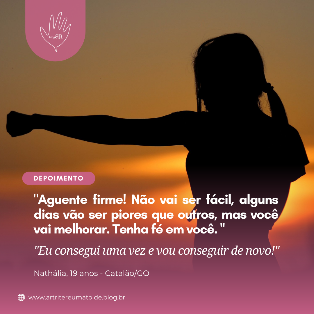 Meu nome é Nathália, tenho 19 anos, convivo com o diagnóstico de Artrite Idiopática Juvenil há 3 anos e meio, sou Estudante e moro em Catalão/GO.
