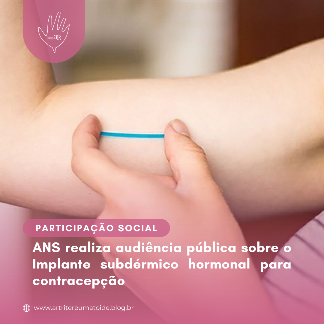 A Consulta Pública nº 112/2023 para receber contribuições para a revisão da lista de coberturas dos planos de saúde, a qual está inclusa a UAT 70, que trata de Implante subdérmico hormonal para contracepção/anticoncepção de mulheres jovens de 18 a 25 anos receberá contribuições no período de 15/06/2023 a 04/07/2023.