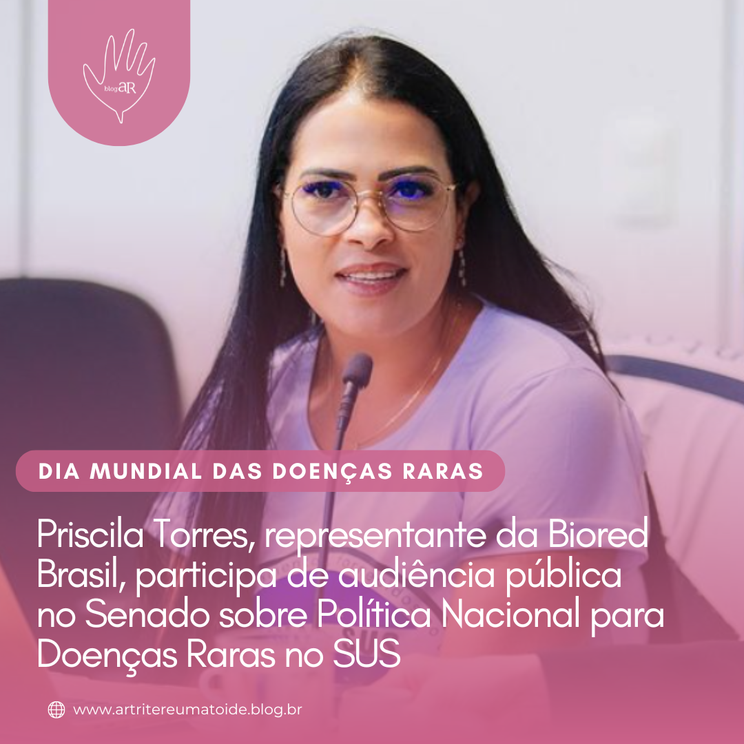 Hoje, 28/02, às 14h, o Senado Federal realiza uma audiência pública para debater o cenário das doenças raras no Brasil. O acesso ao Componente Especializado da Assistência Farmacêutica e a garantia da integralidade da atenção aos portadores de doenças raras previstos na Política Nacional para Doenças Raras serão apresentados por Priscila Torres, Conselheira Nacional de Saúde e representante da Biored Brasil, que participará do debate.