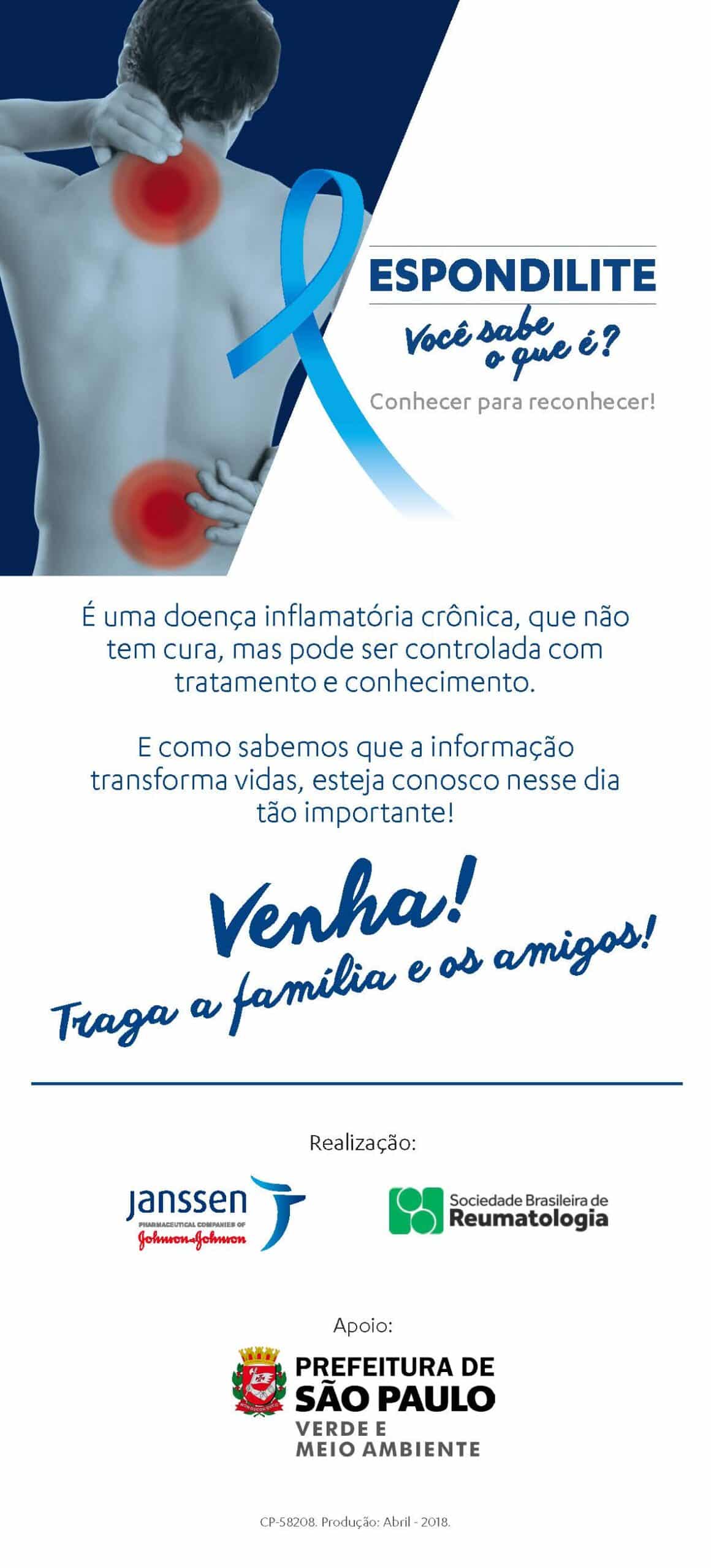 🕺Participe do evento de conscientização do Dia Mundial da espondilite anquilosante, que acontece neste domingo, do dia 06 de maio, em São Paulo. Na ocasião, médicos reumatologistas estarão à disposição para esclarecimento de dúvidas e serão ofertados à comunidade, serviços por meio de aula funcional, yoga e zumba.