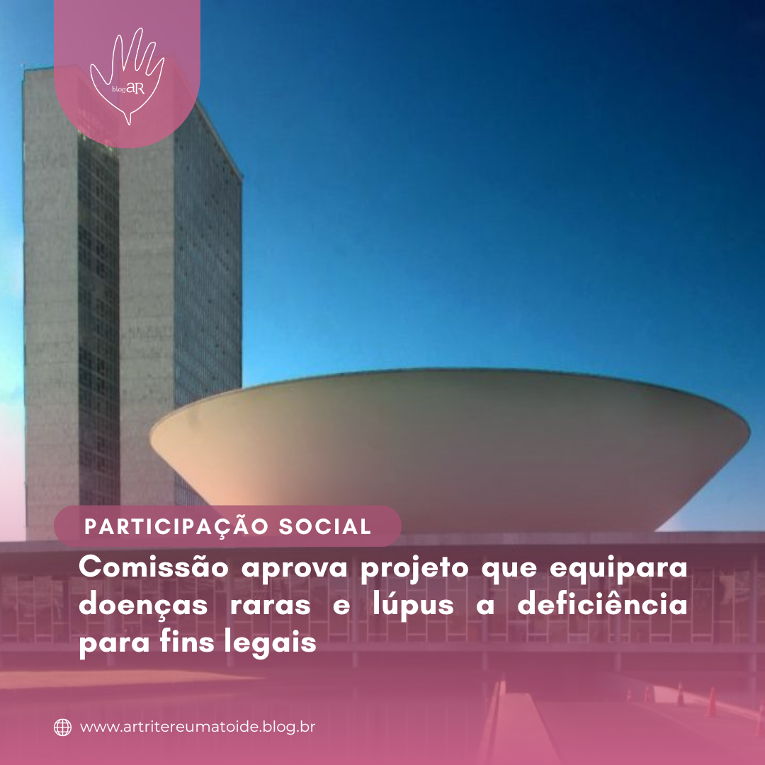 A Comissão de Defesa dos Direitos das Pessoas com Deficiência da Câmara dos Deputados aprovou projeto que classifica como deficiência para todos os fins legais as doenças raras, o lúpus eritematoso sistêmico e discoide, e a artrite reumatoide crônica e juvenil. O texto aprovado também cria a Política Nacional de Proteção ao Paciente com Doenças Raras e Reumáticas.