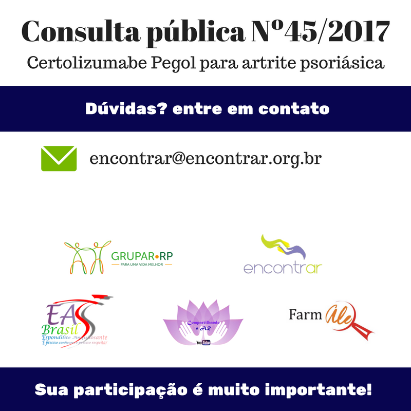 ![Consulta pública para a incorporação do certolizumabe pegol para o tratamento da artrite psoriásica [Participe]](https://artritereumatoide.blog.br/wp-content/uploads/2017/09/consulta-n°452F2017.png)