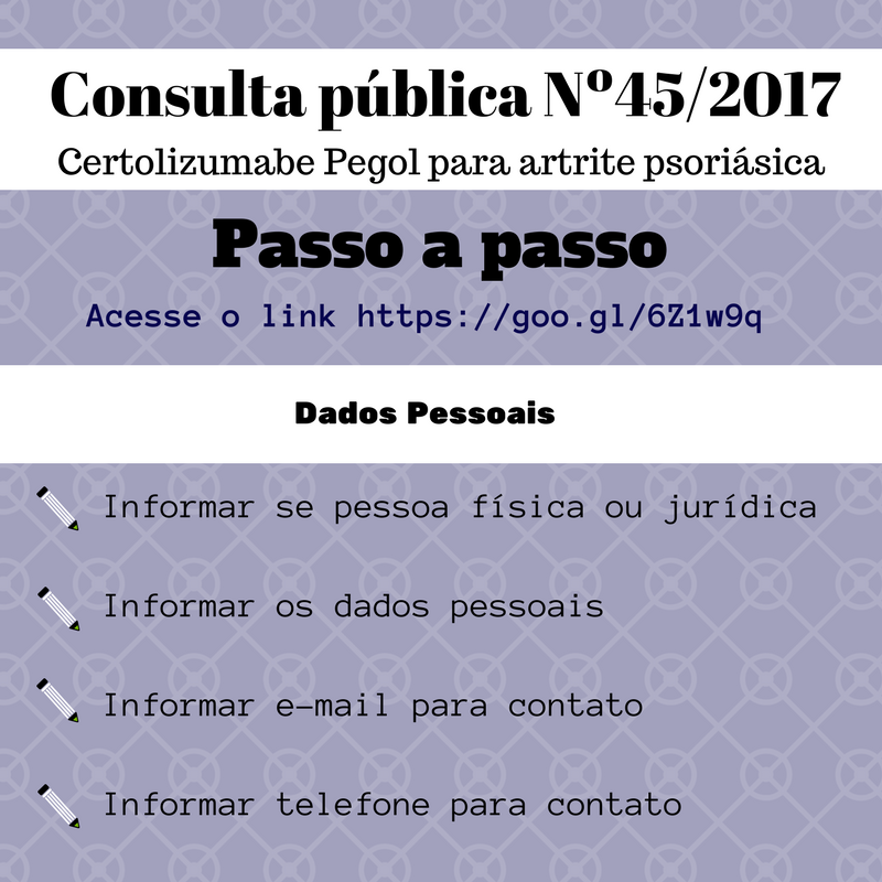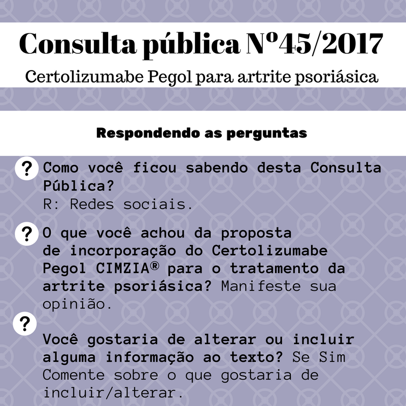 ![Consulta pública para a incorporação do certolizumabe pegol para o tratamento da artrite psoriásica [Participe]](https://artritereumatoide.blog.br/wp-content/uploads/2017/09/consulta-n°452F2017.png)