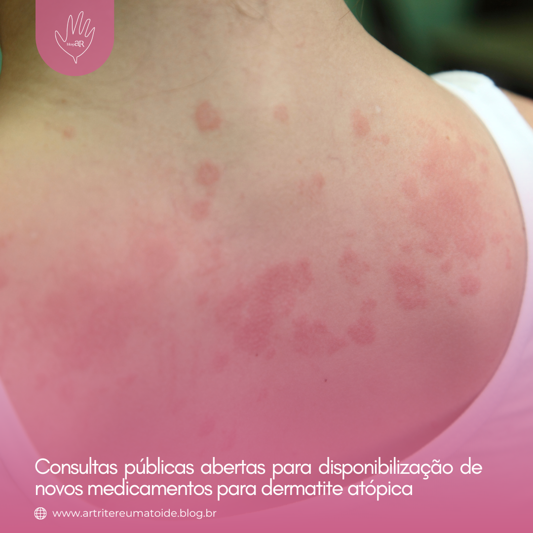 A Comissão de Incorporação Nacional de Tecnologia do SUS, que faz parte do Ministério da Saúde, abriu duas consultas públicas sobre a disponibilização de 3 medicamentos (abrocitinibe, baricitinibe, dupilumabe, upadacitinibe) para tratar a dermatite atópica moderada e grave. Uma delas voltada para crianças e adolescentes, e a outra para adultos. As consultas ficaram abertas até o dia 17 de julho. A doença, se não tratada corretamente, pode ocasionar complicações importantes como infecções de pele e alteração na glicemia. Em casos mais graves, leva a internação e hospitalização.