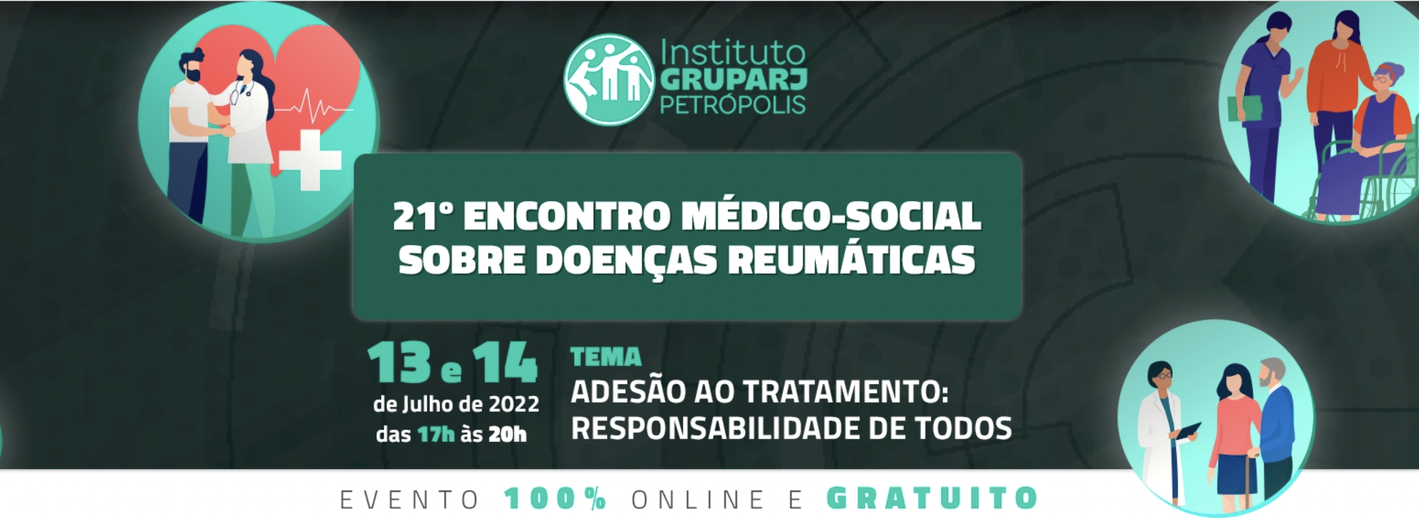 Nos dias 13 e 14 de julho das 17h às 20h, o Instituto Gruparj Petrópolis vai realizar o 21º Encontro Médico-Social sobre Doenças Reumáticas de forma 100% ONLINE e GRATUITO.