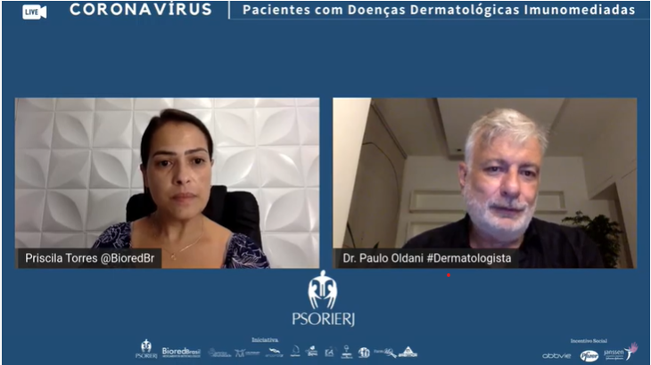 Seguindo com o objetivo de conscientizar e educar os pacientes neste período de pandemia em relação ao autocuidado em mais uma transmissão online, o Dr. Paulo Oldani, dermatologista e Priscila Torres, da Biored Brasil, se reuniram virtualmente para debater o cenário atual para os pacientes com doenças dermatológicas imunomediadas. O webinar “Coronavírus em pacientes com Psoríase e Doenças Imunomediadas Dermatológicas: importância e segurança da manutenção do tratamento”, transmitido em 1º de dezembro, está disponível no link: https://youtu.be/jAlemmSzJWA