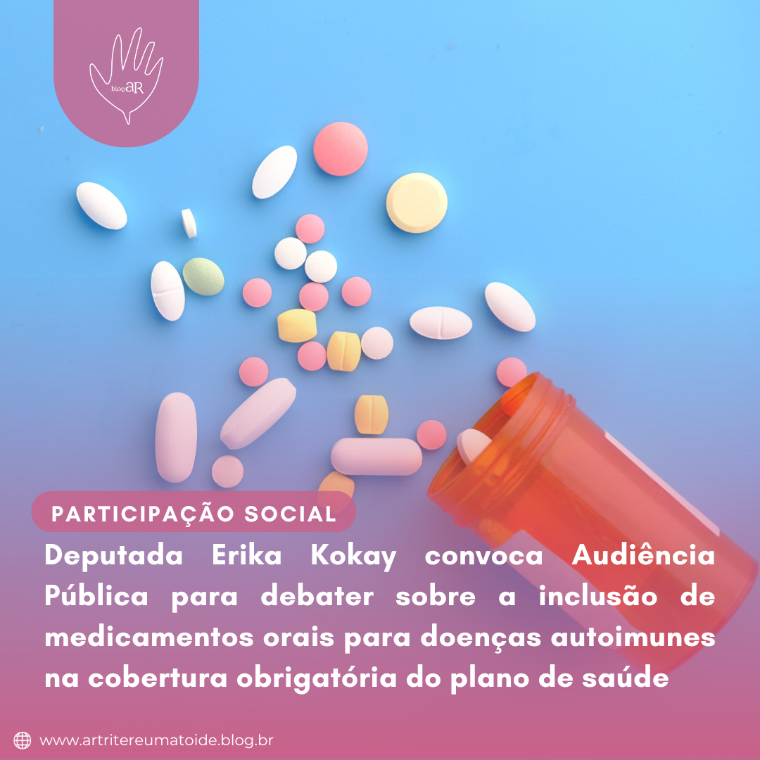 Audiência pública acontecerá no dia 28 de novembro de 2023 as 10h, na Câmara dos Deputados. Iniciativa da Deputada Erika Kokay e será realizada em conjunto pelas comissões de Legislação Participativa e de Direitos Humanos, Minorias e Igualdade Racial. Debaterá a relevância social do Projeto de Lei 4871/2023 de autoria da Deputada Erika Kokay que prevê a inclusão dos medicamentos orais alvo específicos para o tratamento de doenças imunomediadas no rol de coberturas mínimas obrigatórias dos planos de saúde.