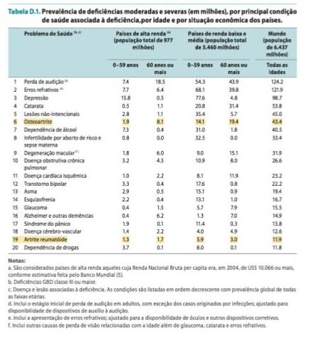 Segundo o relatório mundial sobre a deficiência da Organização Mundial da Saúde (OMS), a artrite reumatoide ocupa a 19º posição entre as doenças que causam deficiência. O relatório enfatiza ainda que é complicado estabelecer a relação entre os problemas de saúde e as deficiências.