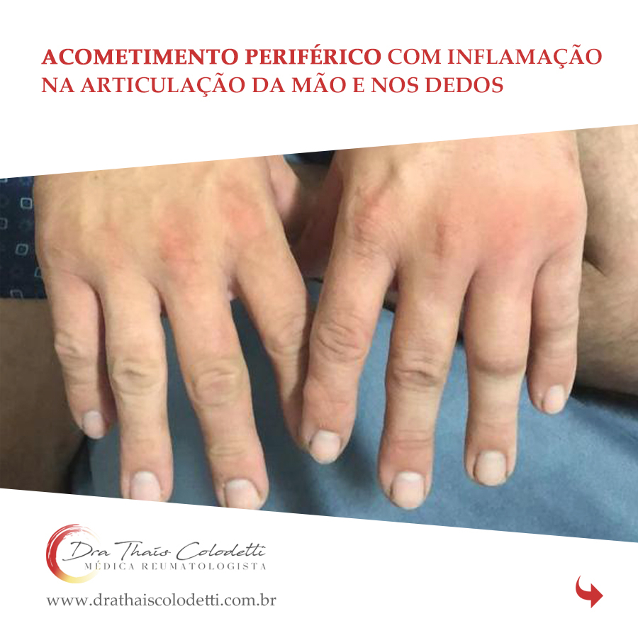 Os sintomas articulares variam de cada paciente, normalmente causa dor e inchaço nas articulações acometidas, com sensação de rigidez (ficam duras).⠀