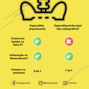 Desta vez explicaremos a diferença de ESPONDILITE ANQUILOSANTE para ESPONDILOARTRITE AXIAL NÃO-RADIOGRÁFICA.