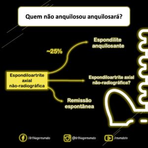 Bem, quem ainda não fez esta anquilose (fusão ou pontes ósseas), mas tem o acometimento inflamatório da coluna ou da articulação sacroilíaca visto na ressonância magnética, mas não no raio-X, chamamos de espondiloartrite axial não-radiográfica.