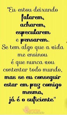 Estou deixando falarem, acharem, especularem e pensarem… Se tem algo que a vida me ensinou é que eu nunca vou contentar todo mundo, mas se eu conseguir estar em paz comigo mesma, já é o suficiente.