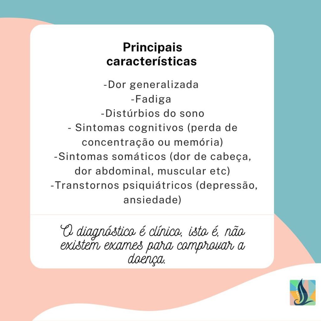Definida como uma síndrome dolorosa crônica caracterizada por dor musculoesquelética generalizada e fadiga, frequentemente acompanhada de distúrbios do sono, cognitivos, psiquiátricos e sintomas somáticos.