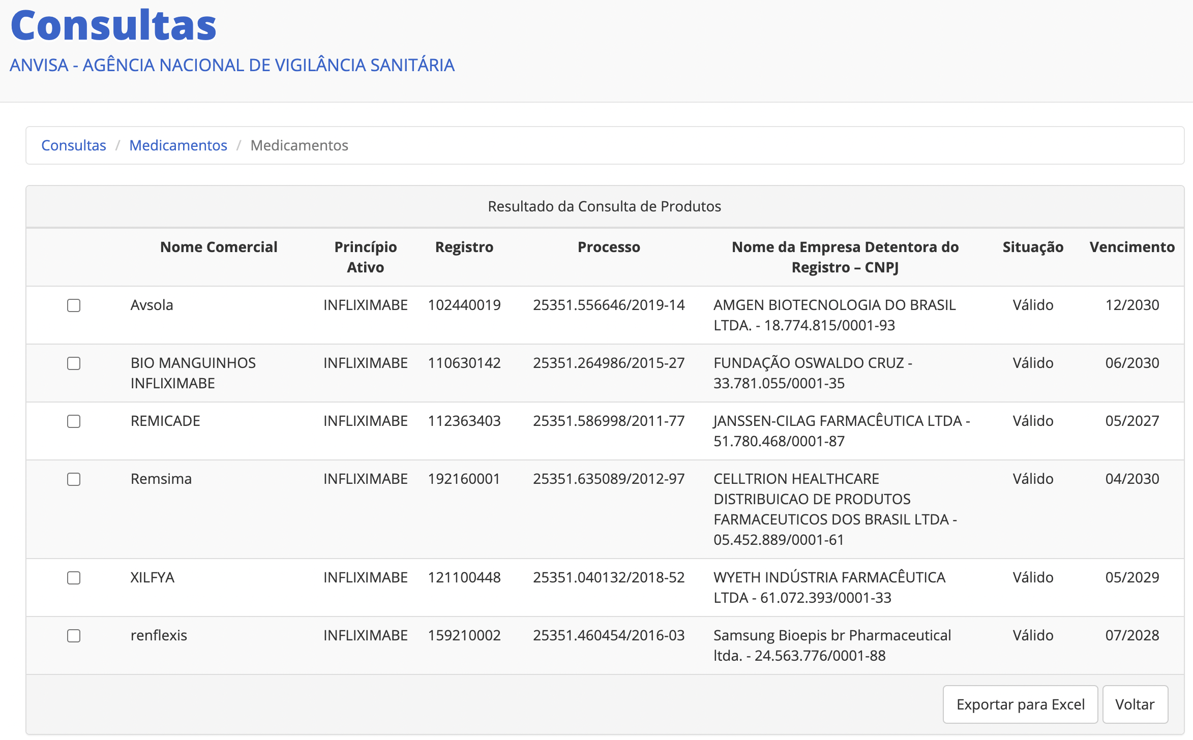 - Bio-Manguinhos Infliximabe da Fundação Oswaldo Cruz