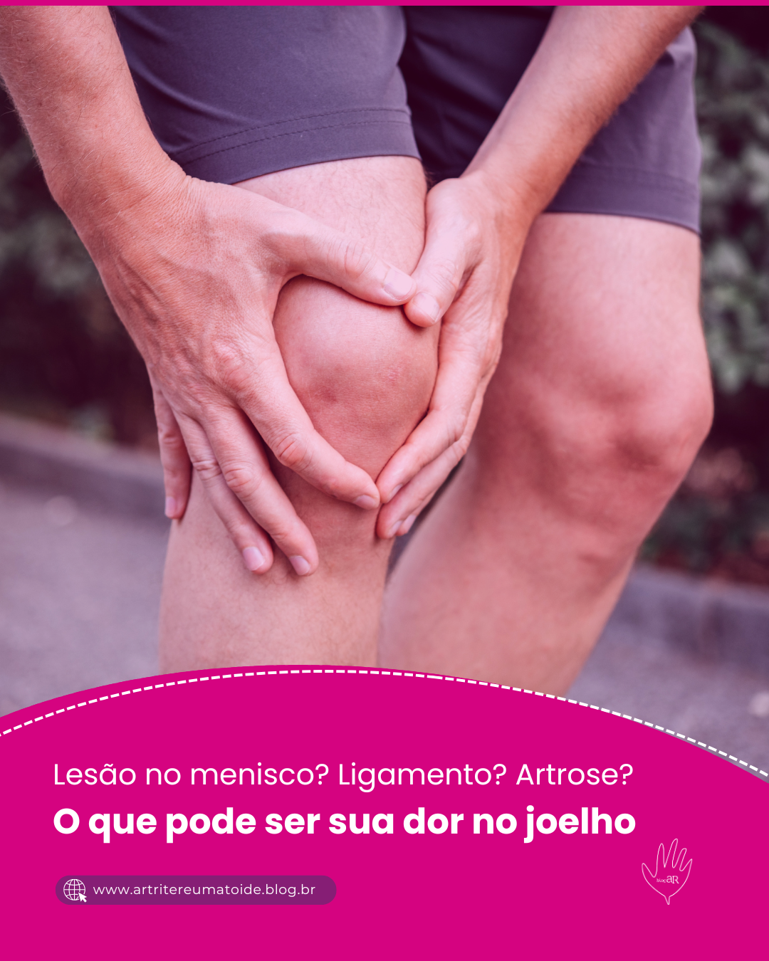 Artrite reumatoide: doença autoimune que faz o corpo atacar suas próprias articulações. Afeta não só joelhos, mas também mãos e pés, provocando dor e inchaço. Pode aparecer em qualquer idade, e é mais comum em mulheres.