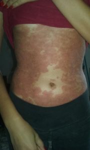 Até que um dia eu tinha consulta de rotina com a alérgica (pelo SUS) e no meu desespero mostrei as manchas pra ela, com a esperança de descobrir o que era. E na hora ela foi marcar uma consulta pra mim com uma dermatologista. Chegando na consulta com a dermato, ela me avaliou e disse que era psoríase, só teríamos que descobrir qual delas ( agradeço muito a Deus por ter colocado ela no meu caminho), ela foi um amor de pessoa, ai eu comecei a tomar o metrotexato e em questão de uns 2 a 3 meses já estava sem lesão nenhuma, só estava com um tipo de cicatriz (mas logo sumiu).