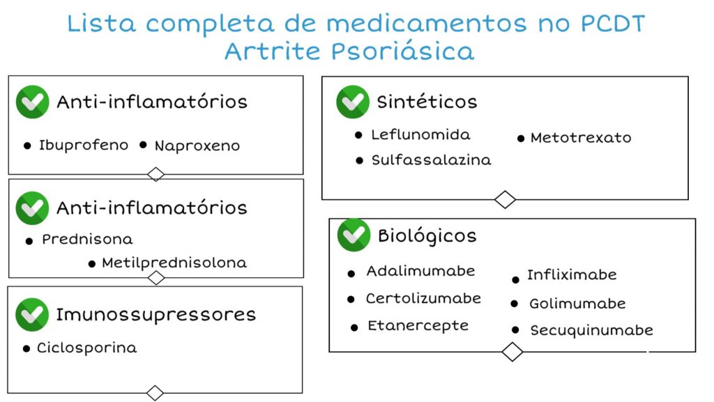 Confira a lista de medicamentos que serão disponibilizados no protocolo de tratamento da artrite psoriásica no SUS: