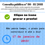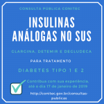 Insulinas que atualmente são fornecidas e financiadas por 11 Secretarias de Estado de Saúde, recebe da Conitec recomendação de não incorporação no SUS, médicos e pacientes podem se manifestar por meio de formulário online até essa quinta-feira, dia 17 de janeiro de 2019.
