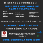Com a recomendação de não incorporação, os pacientes com diabetes do tipo 1 e 2 atendidos nos protocolos estaduais, podem ter o fornecimento ameaçado, pois sem a aprovação no protocolo clínico e diretrizes terapêuticas do Ministério da Saúde, não ocorre o repasse dos recursos necessários para que esses 11 estados mantenham o fornecimento das insulinas análogas de ação prolongada. Preocupação enviada pela Secretaria de Saúde do Estado de Minas Gerais demandante da solicitação na Conitec.