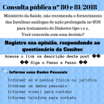 A consulta pública é aberta para participação de qualquer cidadão, no entanto, é importante o engajamento de familiares e pessoas diabetes, já que lidam diariamente com a doença e seus tratamentos. Como o parecer da CONITEC é contra a entrada deste tipo de insulina no SUS, aqueles que são a favor devem optar pela opção “desfavorável” em relação à posição da Comissão.
