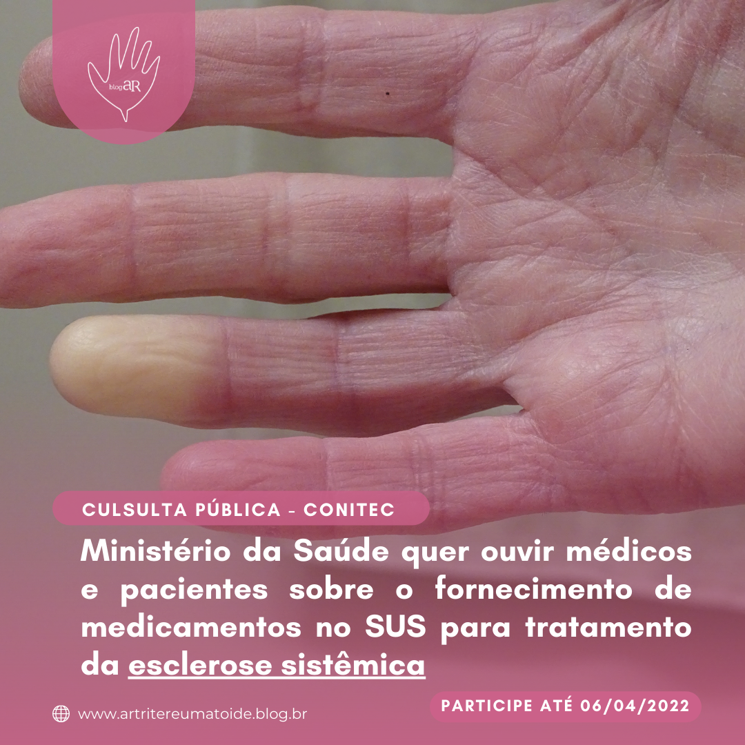 O Ministério da Saúde, apresenta a proposta de atualização do Protocolo Clínico e Diretrizes Terapêuticas da Esclerose Sistêmica, incluindo o fornecimento de apenas 10 medicamentos e não recomenda a incorporação dos novos medicamentos essenciais para o tratamento da doença no sistema público de saúde. Ou seja, o acesso a medicamentos para os pacientes esclerodérmicos pode ficar ainda pior no SUS e nos planos de saúde.