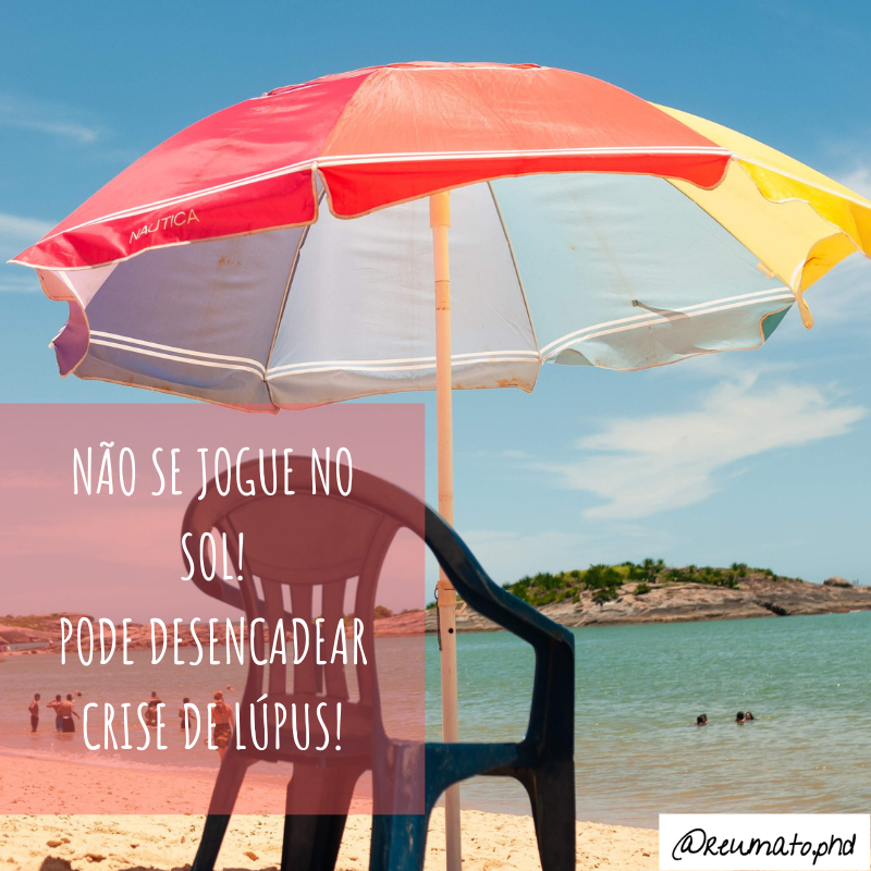 Não se jogue no sol! Especialmente os pacientes que sofrem de lúpus! A radiação ultravioleta pode desencadear crises. Aí, já viu como vai ser seu Réveillon, não é mesmo?⠀