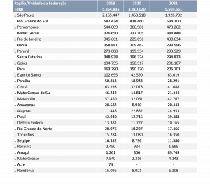 Porém, nas três regiões mais populosas, os indicadores continuam abaixo do que foi registrado antes do início da pandemia. O déficit é de -6%, no Sudeste; – 7%, no Sul; e de -17%, no Nordeste. Em termos absolutos, isso significa que as três regiões produziram em 2021, um total de 464.163 mil exames para retinopatia diabética a menos do que em 2019. Na comparação com 2020, a produção de janeiro a setembro desse ano, foi inferior em 1.452.824 procedimentos.