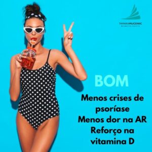 Já por outro lado, tem aqueles que se beneficiam da estação. Quem sofre de psoríase costuma ter as manchas e crises amenizadas, devido ao contato com a radiação solar. E quem sofre de artrite reumatoide também costuma passar a estação com menos dor. E por que não lembrar de quem tem osteoporose e dá aquela reforçada na Vitamina D ao pegar um solzinho de leve?! Falando nela, a vitamina D que o sol nos traz é um importante aliado na manutenção de nosso sistema imunológico ativo, então, em pequenas e moderadas doses, vem super bem.