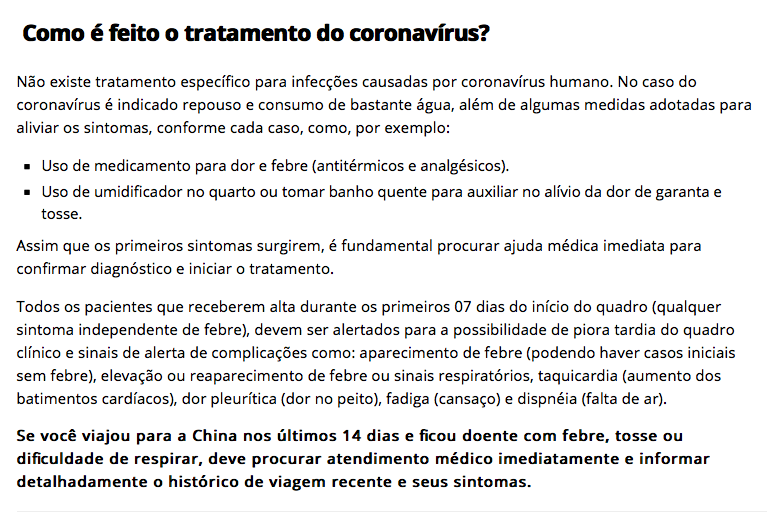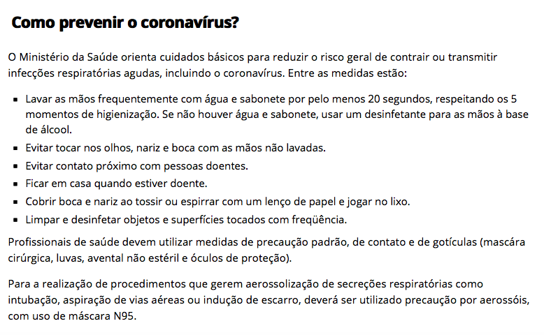 Como sugestão, o Ministério da Saúde disponibilizou aplicativo (Coronavírus – SUS) sobre o coronavírus com informações, dicas, mapas de unidades de saúde, além de uma avaliação rápida sobre a relação de sintomas relatados com a definição de caso suspeito do vírus.