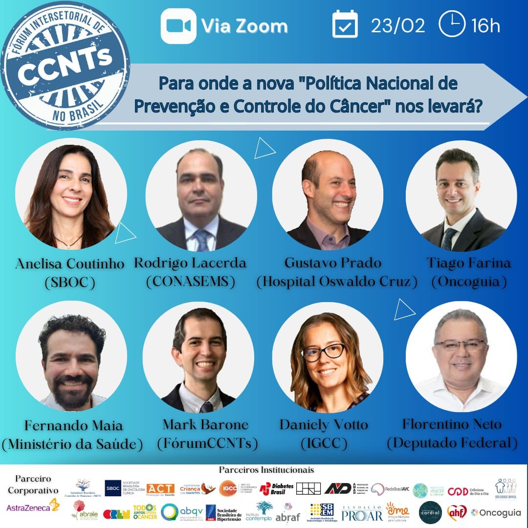 17h15-17h55 – Debate com todos os painelistas – Compromisso de todas as instituições e setores presentes para que a nova Política Nacional de Prevenção e Controle do Câncer seja prontamente implementada levando a melhores desfechos, especialmente no enfrentamento de tipos de câncer mais prevalentes e letais, como o câncer de pulmão (Moderação: Mark Barone, FórumCCNTs)