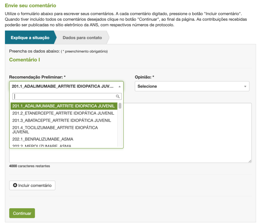 - Não se esqueça de fazer o mesmo processo para os 4 medicamentos, é bem simples, basta após incluir comentários voltar ao início do formulário e selecionar o outro medicamento, repetindo este processo, até contribuir com a decisão de incluir os 4 medicamentos no plano de saúde.
