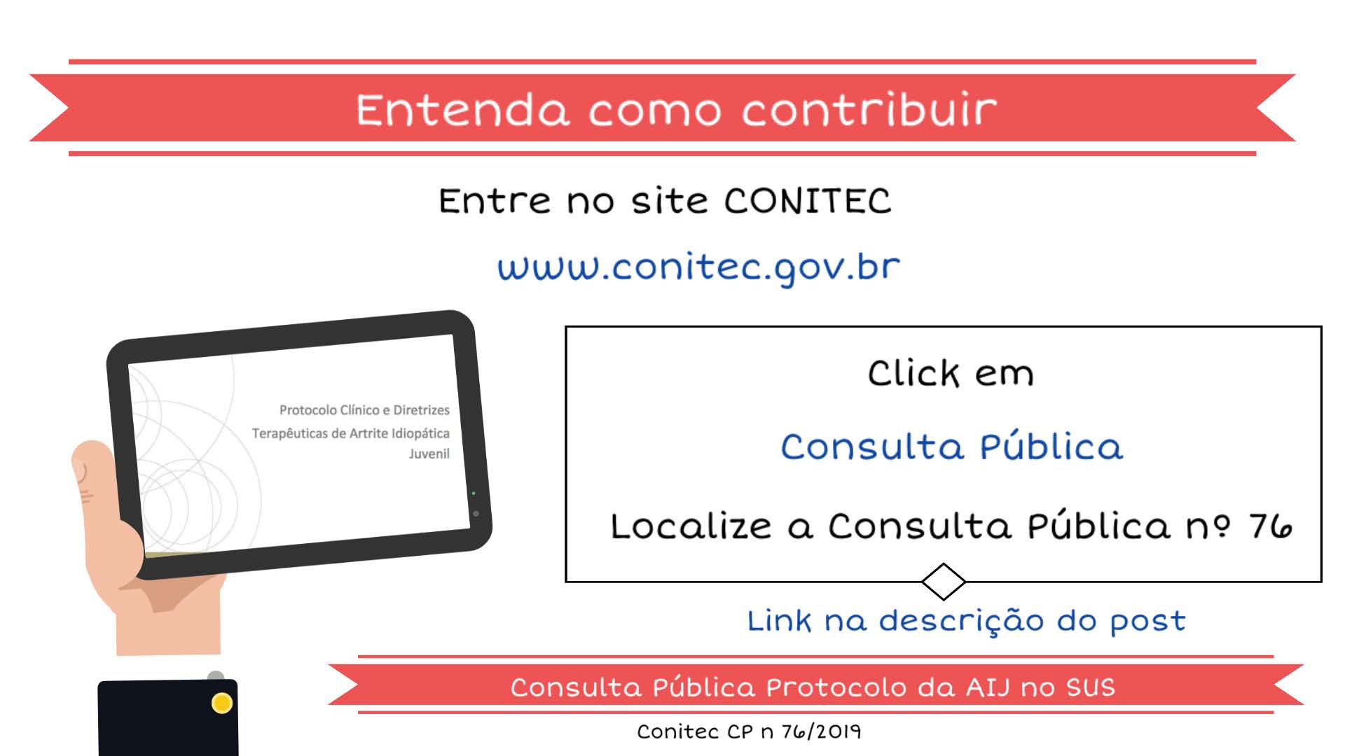 Ministério da Saúde solicita por meio da Consulta Pública Conitec/SCTIE Nº 76/2019, a aprovação da proposta de inclusão no SUS do protocolo de tratamento da Artrite Idiopática Juvenil, o prazo para contribuições encerra-se em 8 de janeiro de 2020