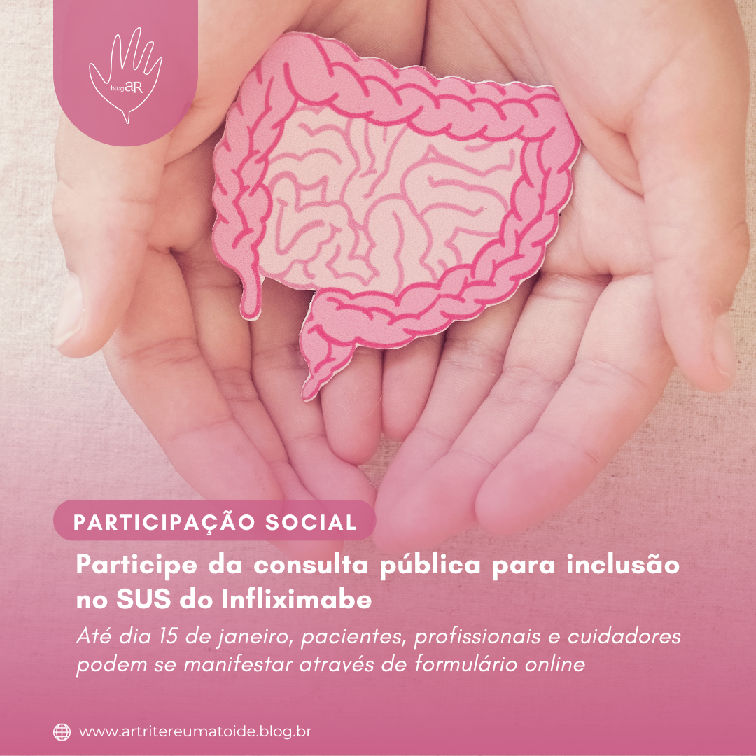 Até 15 de janeiro de 2024, está aberta a consulta pública para incorporação de um novo medicamento no SUS, o Infliximabe. É muito importante a participação de toda a sociedade civil para que possamos conseguir ampliar o leque de opções terapêuticas para milhares de pacientes que dependem do sistema único de saúde.