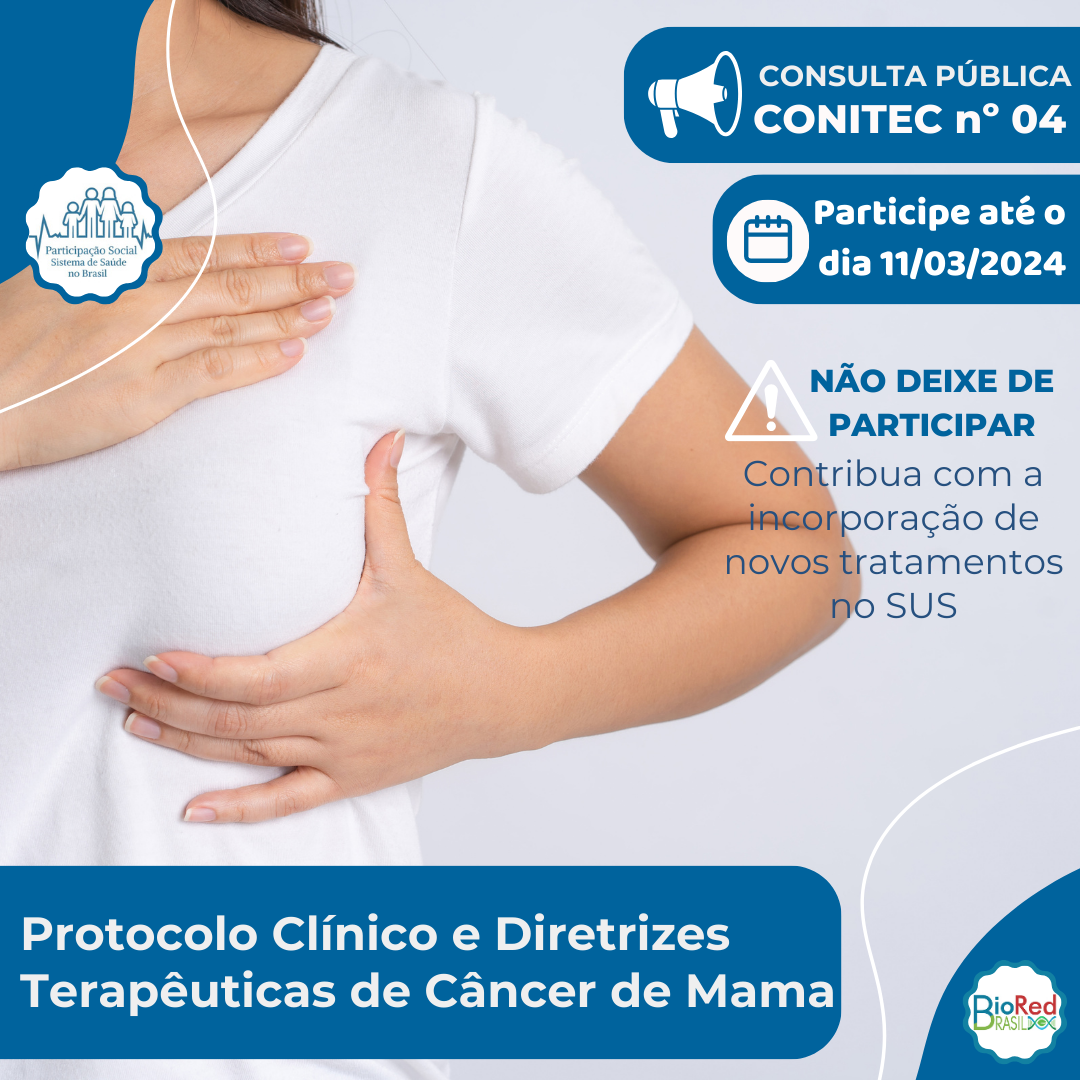 Consulta Pública nº 4 – Protocolo Clínico e Diretrizes Terapêuticas (PCDT) de Câncer de Mama
