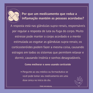 O estresse é um dos gatilhos para ativar a insônia que dormia nas pessoas que não utilizam corticoide, os pacientes usuários de corticoide ativam todo o o seu estresse, retirando a paz e harmonia de nosso sono..