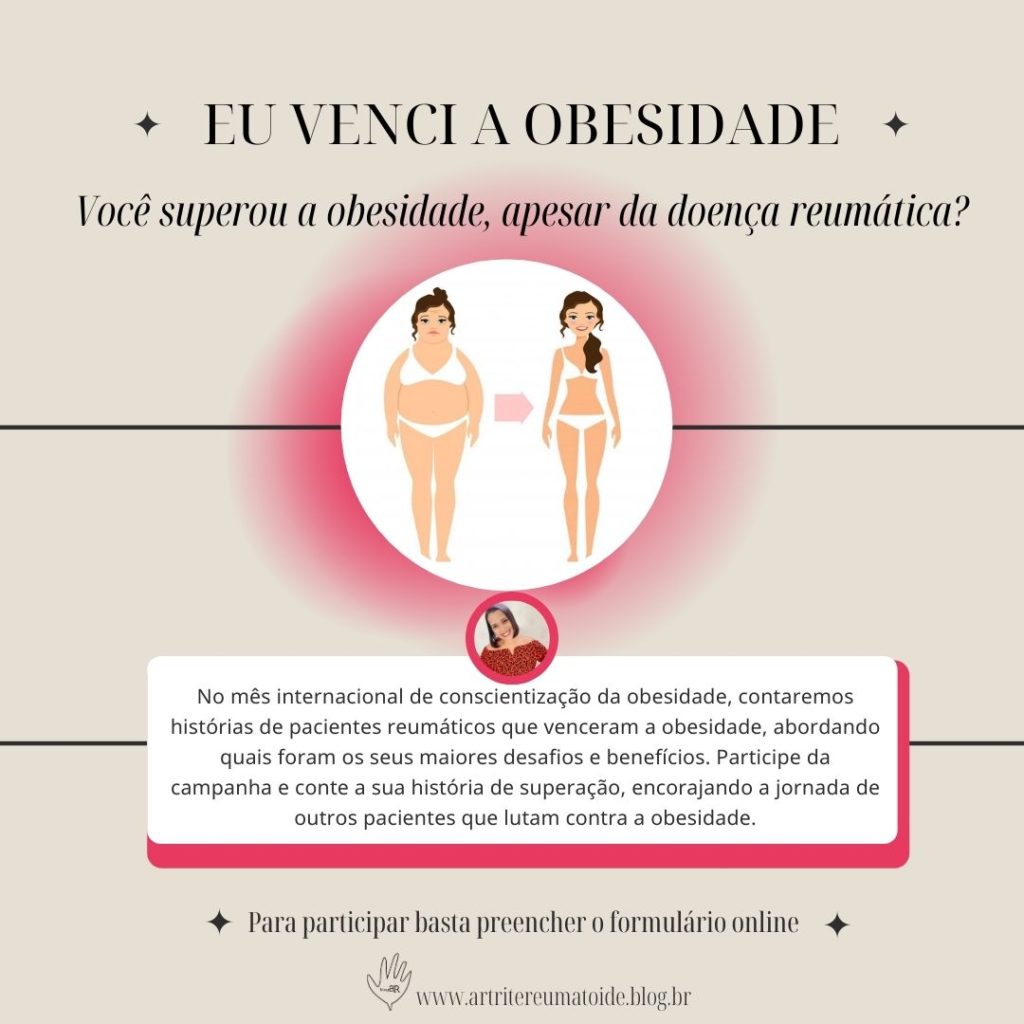 Saiba mais em https://artritereumatoide.blog.br/doe-sua-historia-para-a-campanha-de-superacao-da-obesidade-nas-doencas-reumaticas/