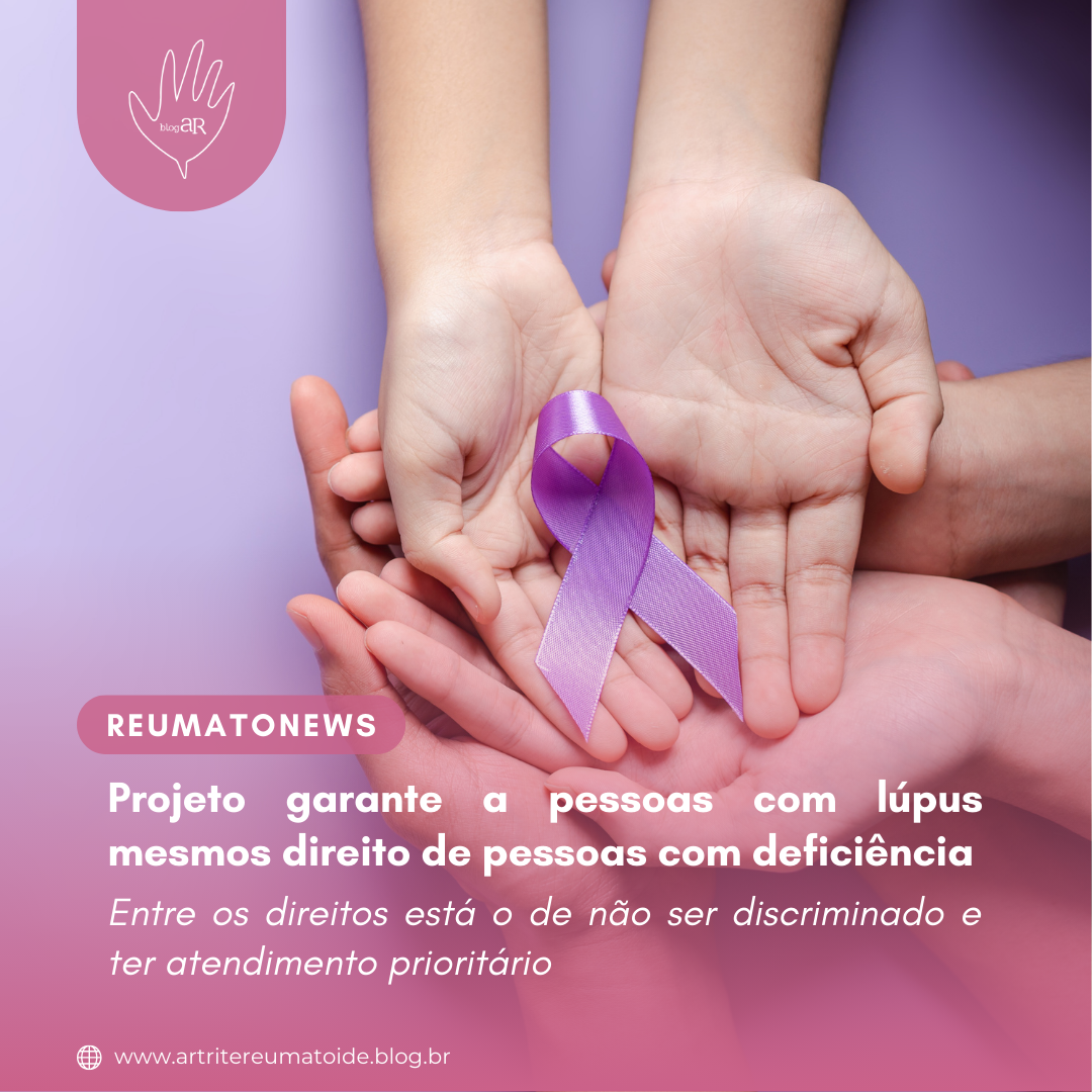 O Projeto de Lei 1456/23 equipara pessoas com lúpus à pessoa com deficiência para todos os efeitos legais. O texto garante aos portadores da doença os direitos previstos em lei para pessoas com deficiência, como o direito a não discriminação e a atendimento prioritário. A proposta está sendo analisada pela Câmara dos Deputados.
