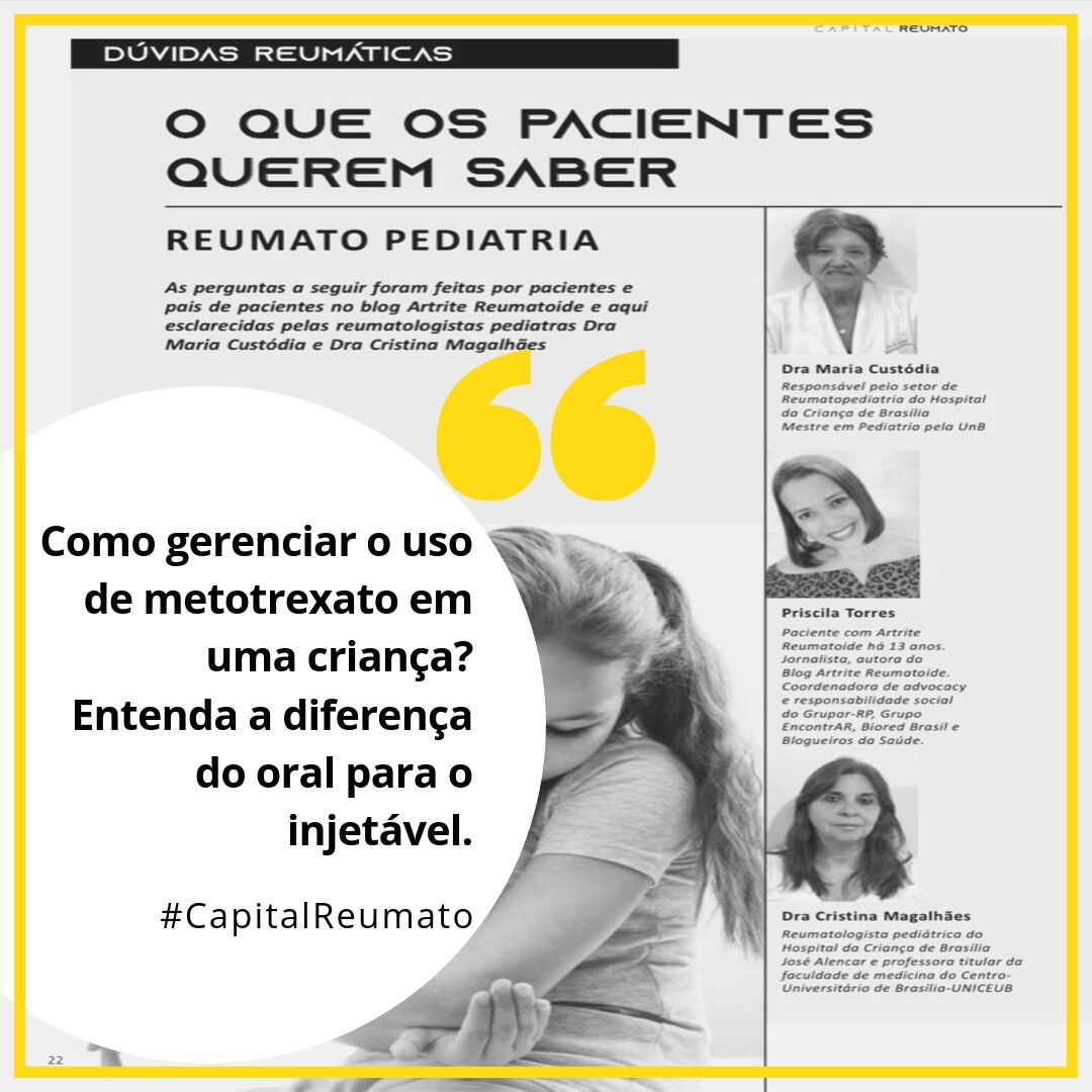 O que os pacientes querem saber – Sociedade de Reumatologia de Brasília, dedica um espaço especial para esclarecer dúvidas dos pacientes em sua revista “Capital Reumato”, por duas edições o BlogAR colaborou com o envio das perguntas mais frequentes. Confira os esclarecimentos sobre reumatologia pediátrica, explicados pela Dra. Maria Custódia e Dra. Cristina Magalhães.