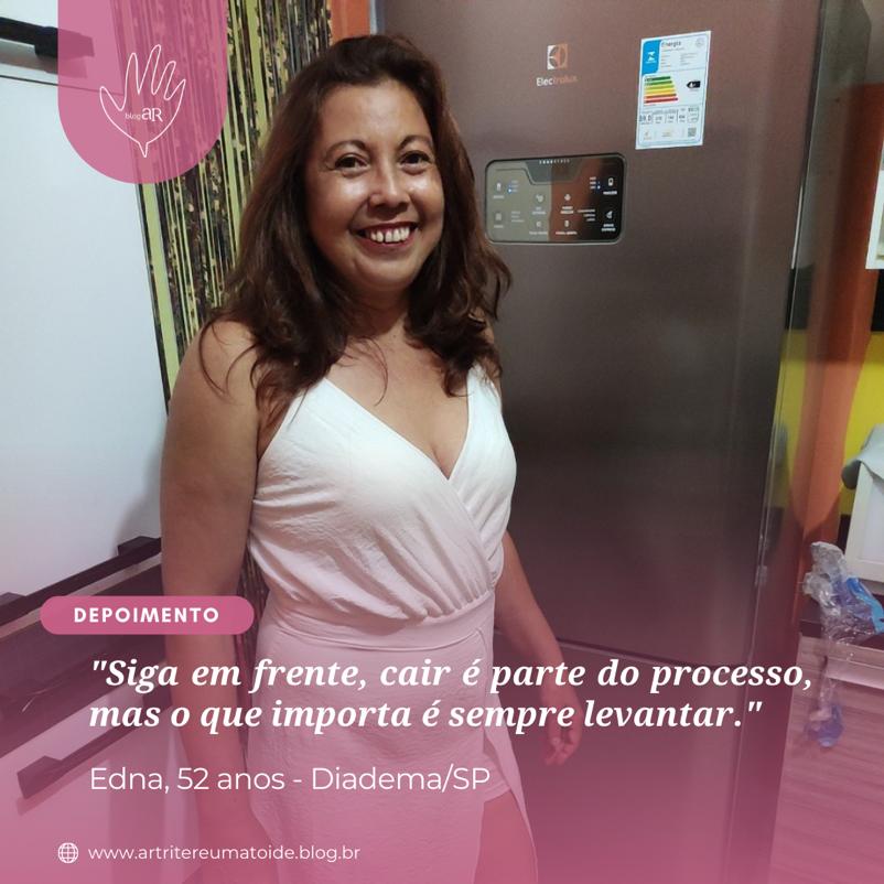 Meu nome é Edna, tenho 52 anos, convivo com o diagnóstico de AR a quase 2 anos, sou Artesã e moro em Diadema-SP.