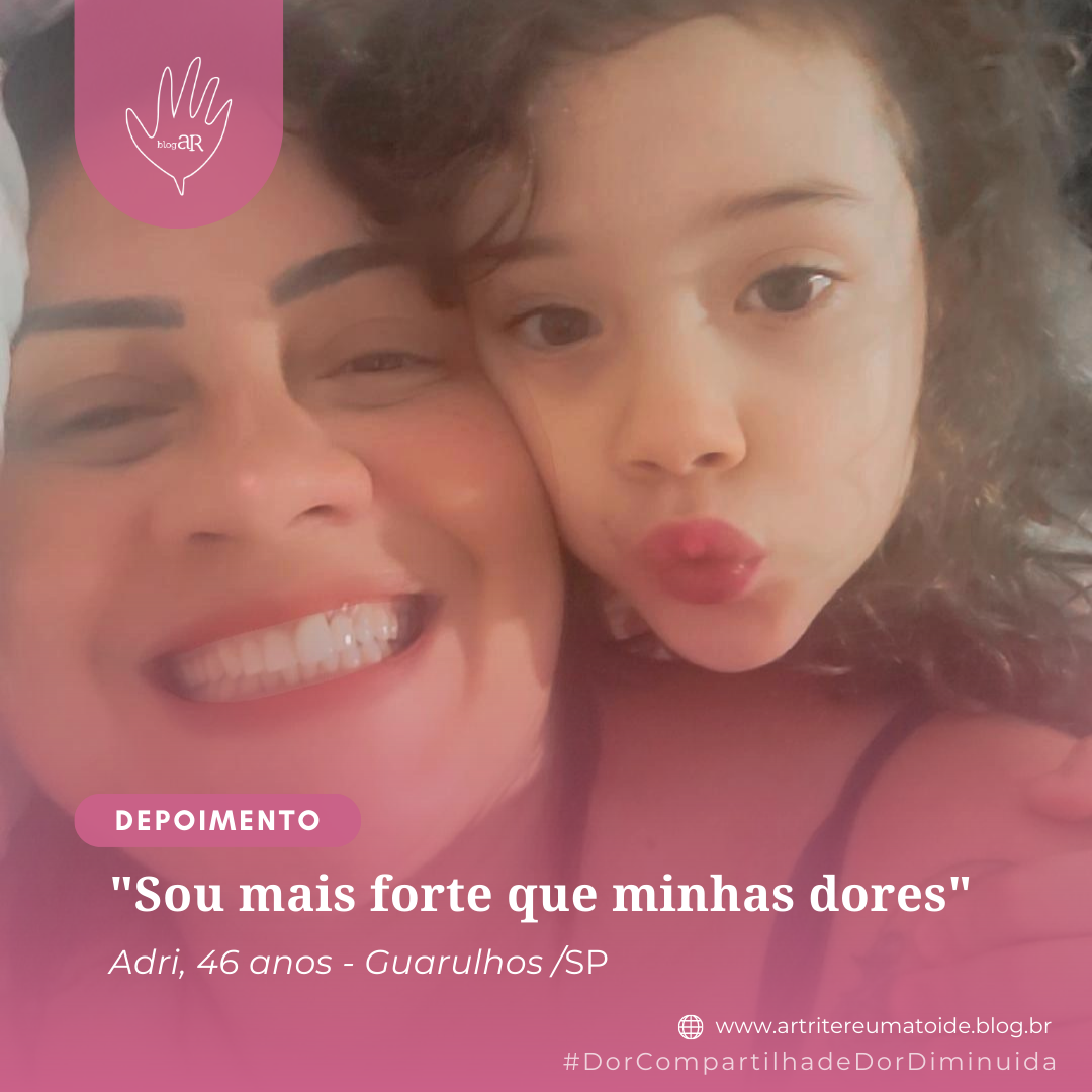 Me chamo Adri, tenho 46 anos, convivo com o diagnóstico de Artrite Reumatoide à 3 anos, sou Esteticista e Maquiadora, e moro em Guarulhos no estado do SP.