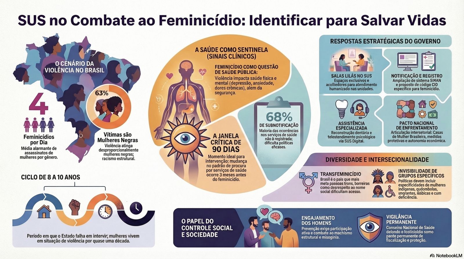 Ela explicou que muitas mulheres vivem entre oito e dez anos em ciclos de violência antes do assassinato, período em que frequentemente procuram unidades de saúde. “Essas mulheres passam pelas unidades básicas, pelas maternidades, pelas UPAs. O SUS é muitas vezes o único serviço público que elas conseguem acessar”, afirmou. Pesquisas recentes indicam que mulheres vítimas de feminicídio mudam o padrão de procura por serviços de saúde até 90 dias antes da morte, o que pode representar uma oportunidade de identificação precoce da violência.