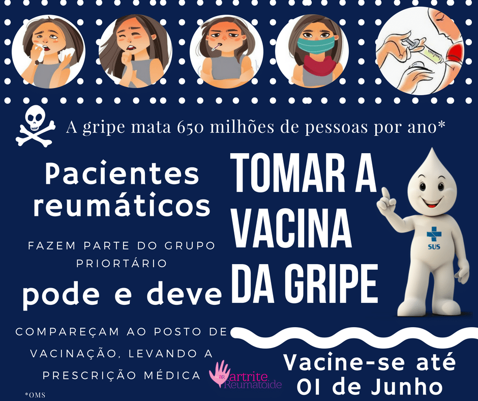 A reumatologista, Dra. Gecilmara Salviato Pileggi, coordenadora da Comissão de Doenças Endêmicas e Infecciosas da Sociedade Brasileira de Reumatologia, ressalta que a vacina contra a gripe é de indicação absoluta aos pacientes reumáticos, já que é um grupo mais vulnerável a ter complicações graves se tiver gripe. A pessoa com doença reumática tem mais chances ter um quadro mais complicado com infecções secundárias, como pneumonias que podem levar a internações hospitalares e até óbito.