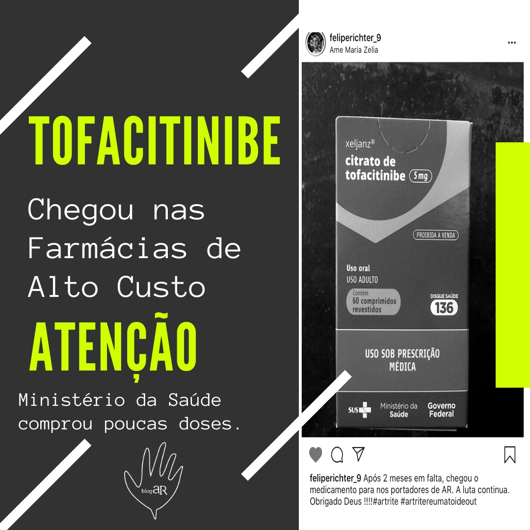 Informamos que o medicamento Citrato de Tofacitinibe, que há mais de 3 meses estava em falta no SUS, encontra-se disponível para retirada nas unidades das farmácias de alto custo de todo o país. No entanto, a quantidade de doses compradas foi inferior a quantidade que deveria ter sido comprada. Enviamos questionamentos ao Ministério da Saúde por meio do Portal de Acesso à Informação (protocolo 25820009657201928) e até este momento o Departamento de Assistência Farmacêutica do Ministério da Saúde não respondeu nossos questionamentos enviados por e-mail e por meio do E-sic.
